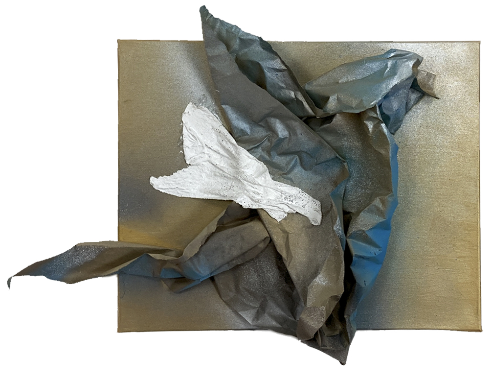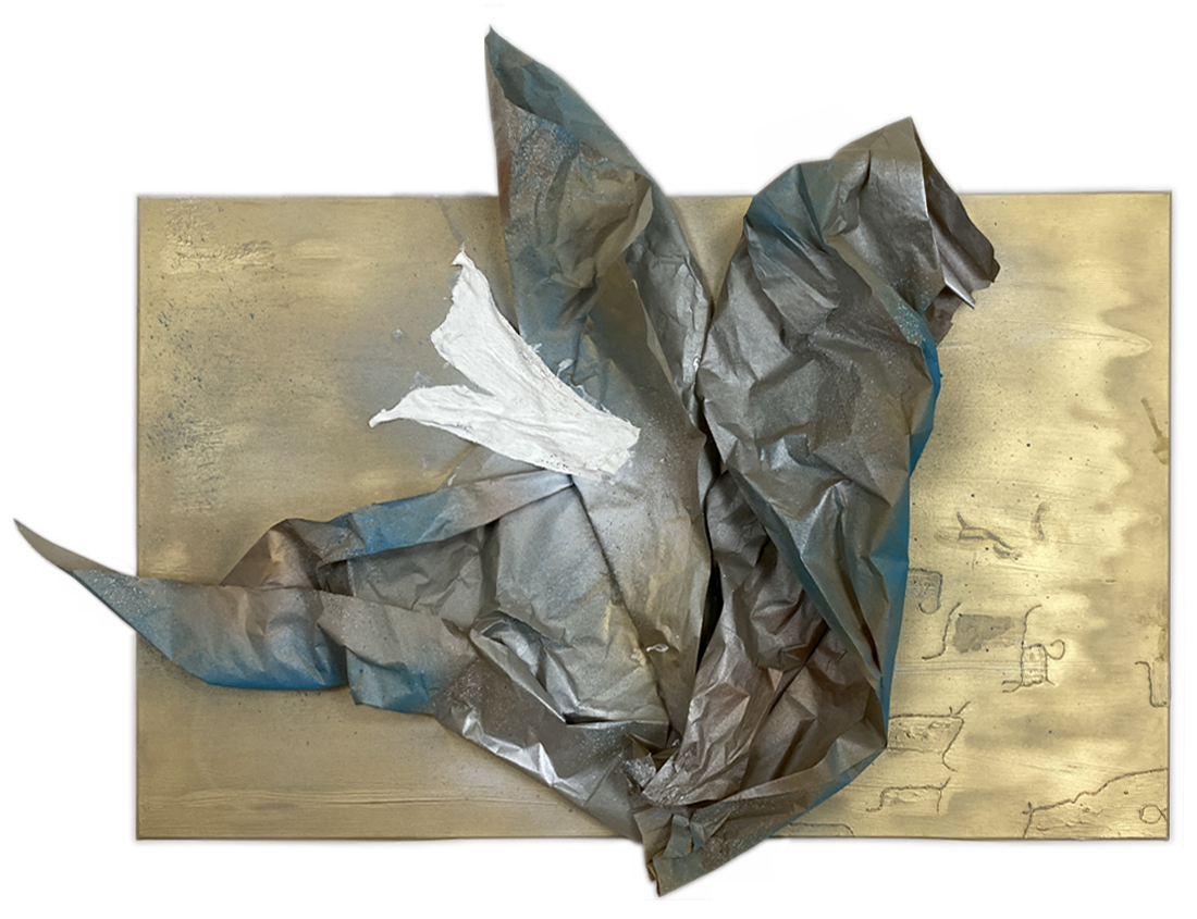 Acryl, Kraftpapier und Metall auf Leinwand | 90 x 50 cm