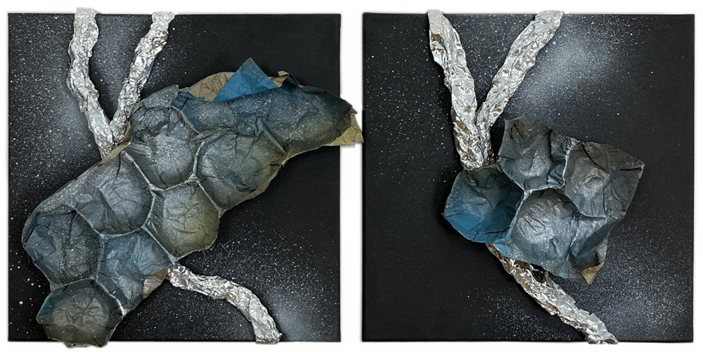 Acryl, Kraftpapier und Alufolie auf Leinwand | je 40 x 40 cm