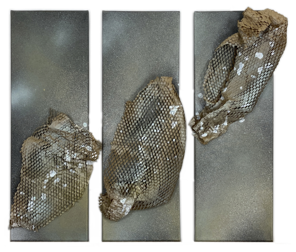 Acryl und Kraftpapier auf Leinwand, dreiteilig | Leinwand je 20 x 60 cm