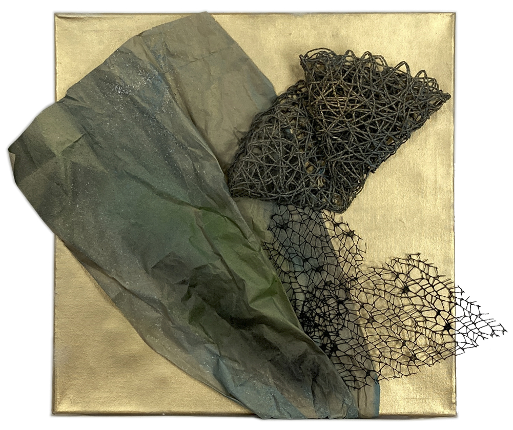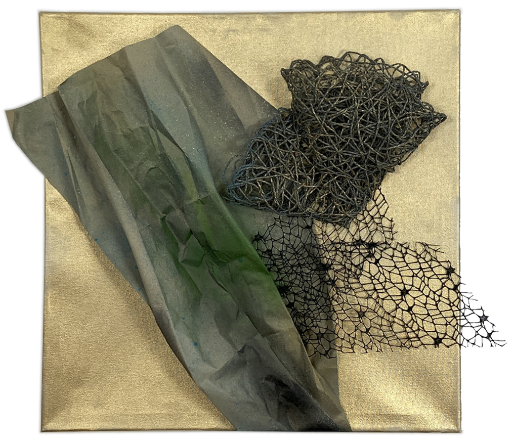 Acryl, Kraftpapier und Netz auf Leinwand | 50 x 50 cm